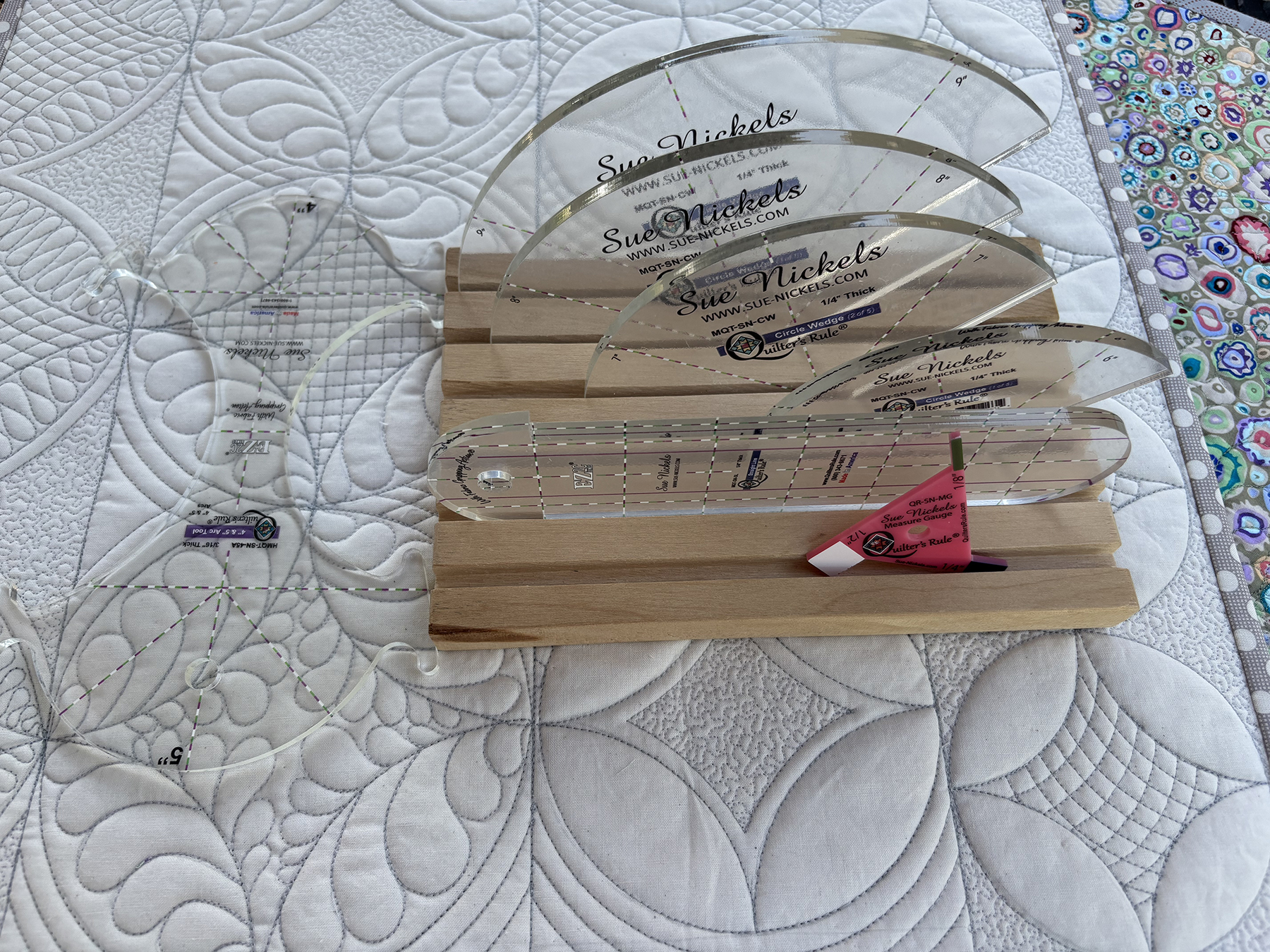 Sue’s Circle Wedge Rulers and 4”/5” Arc will be available to try in class and can be purchased. Special price for students in class: Circle Wedge Ruler Set- $50.00 and Arc ruler $20.00.