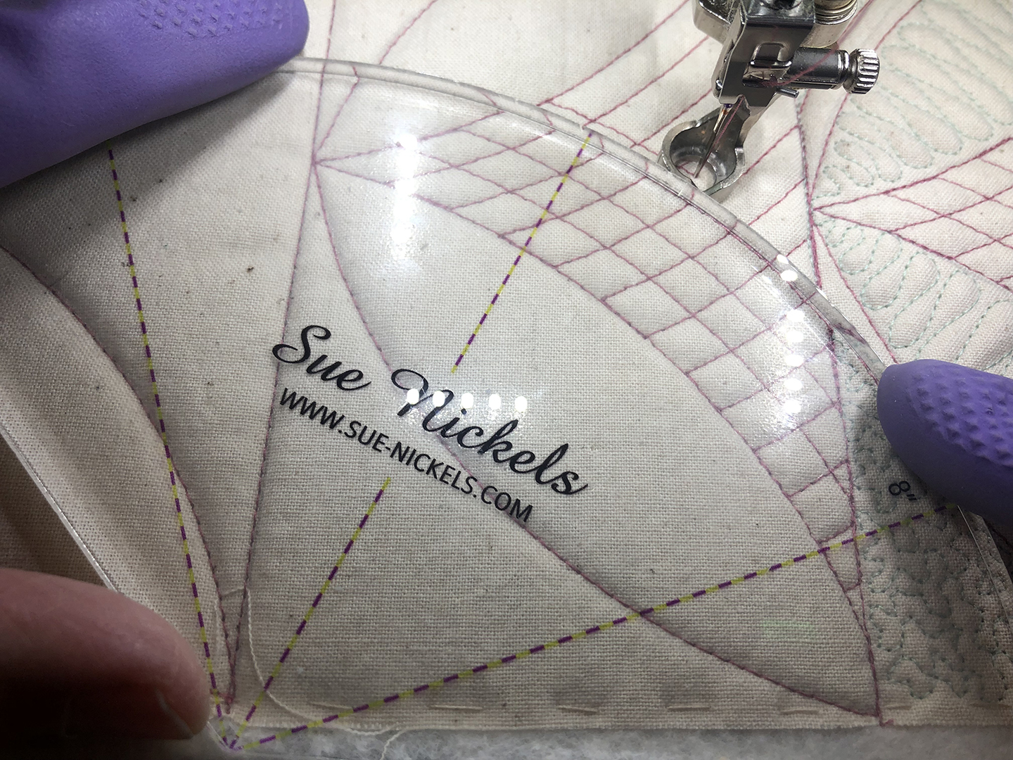 *Quilting gloves (Sue likes Graberoos brand) or Quilters Fingertips- Sue uses fingers cut off of good quality kitchen gloves (Playtex or Mr. Clean)
